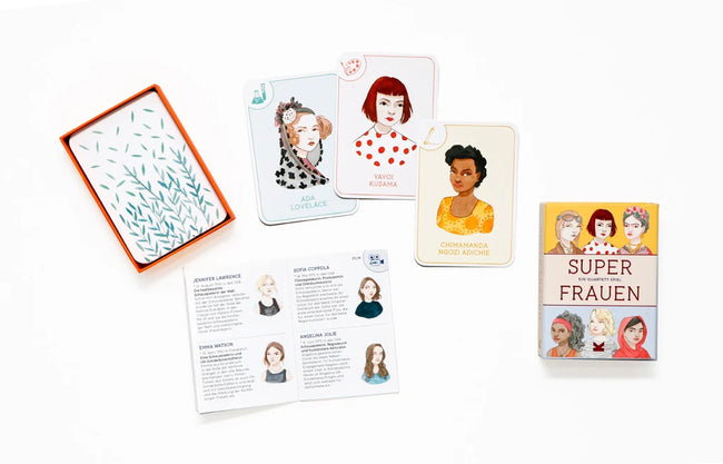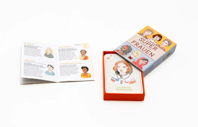 In diesem Kartenspiel finden 44 inspirierende Super Frauen in den Kategorien Film, Sport, Aktivismus, Kunst, Wissenschaft und Mode zueinander. Und im beiliegenden Booklet gibt es spannende Kurzbiografien zu allen Super Frauen.