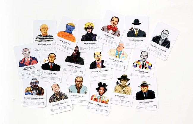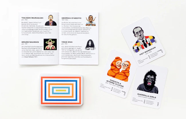 Der Kampf um die Neudefinition der Kunstwelt kann beginnen! Dieses ganz besondere Trumpf-Quartett enthält außerdem ein Booklet mit Kurzbiografien der Künstler*innen.